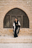 A refined cardigan with bold contrast detailing and a fluid silhouette, designed for effortless, modern elegance.